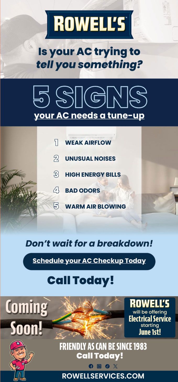 "Friendly As Can Be Since 1983!" When you need help with your plumbing, drains, heating, cooling or electrical in Alton, you can always rely on Rowell's Services! Call us now or book online!
